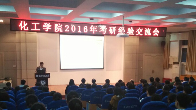 为帮助我化工学子明确考研目标,4月25日晚,公司2016年考研经验交流会在南区学术报告厅顺利召开。化工公司党总支书记夏启中,副经理叶发兵、田正芳出席交流会。