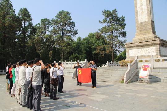 麻城是“黄麻起义”发源地之一,走出了王树声、许世友、陈再道等40多位共和国将军,在册烈士两万多人。在麻城烈士陵园,全体党员在纪念碑前,面向党旗重温了入党誓词。在解说员引导下,大家在麻城革命纪念馆和王树声大将墓前,缅怀了革命烈士的光辉业绩。大家表示,要牢记历史,以先烈为榜样,不忘初心,坚定信念,对照“两学一做”要求,进一步整顿思想,清除灰尘,发挥先锋模范带头作用,为促进学校事业发展贡献出全部光和热。
