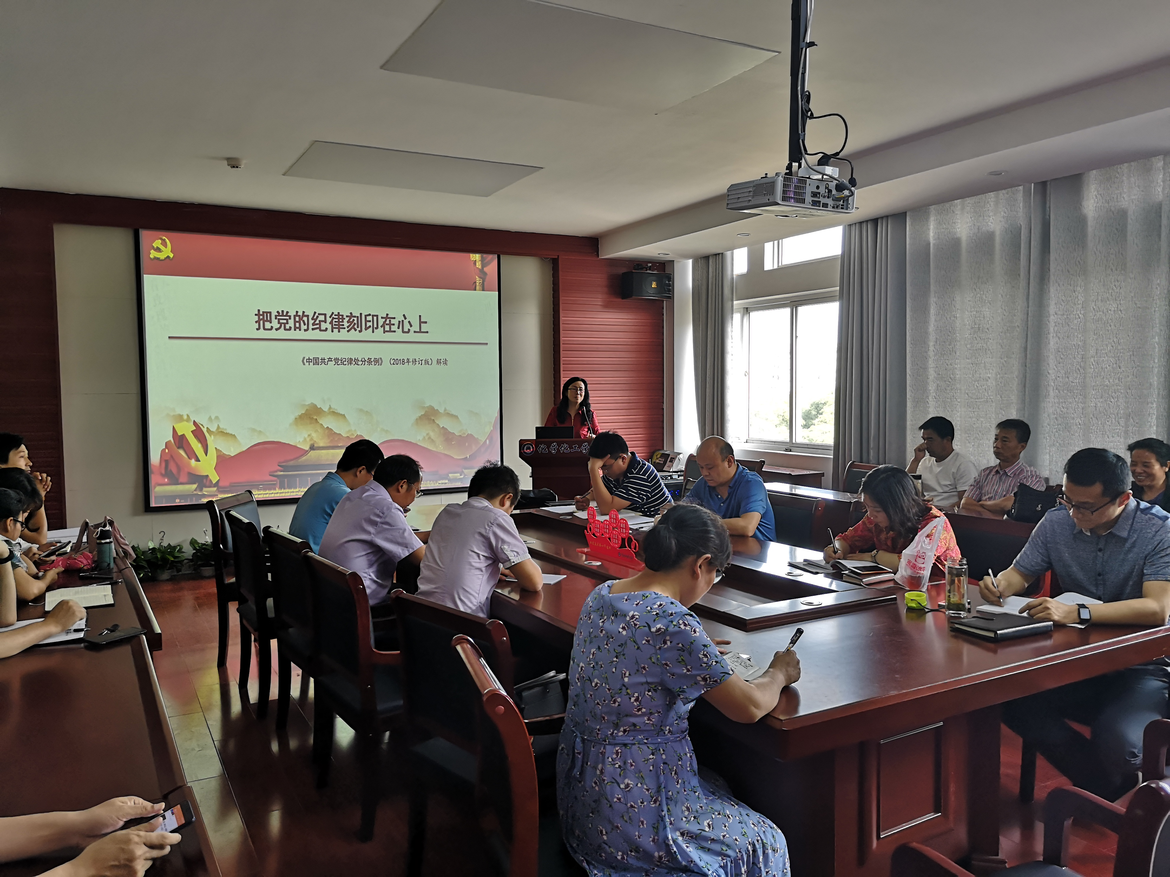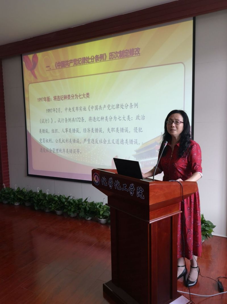 为落实第二十个党风廉政建设宣传教育月活动安排,5月27日下午4点,公司党总支书记施向荣同志在化工楼407会议室给全体教职工上了一堂题为“把党的纪律刻印在心上”的廉政党课,施向荣同志讲了《中国共产党纪律处分条例》历次制定修改情况、新《条例》有哪些特点、新《条例》中哪些硬杠杠不可触碰、把党的纪律刻印在心上四个方面的内容,整个课堂上气氛严肃,庄重。教职工听后,对《中国共产党纪律处分条例》有了进一步的认识,党员同志的廉洁意识得到进一步加强。