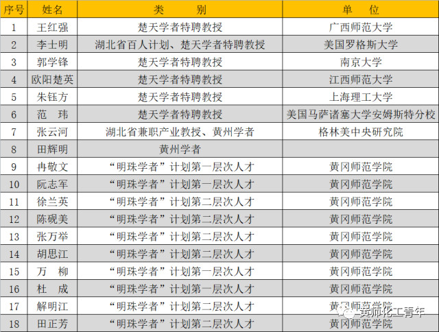 湖北省楚天学者”设岗学科:分析化学、化学工程与技术、制药工程;