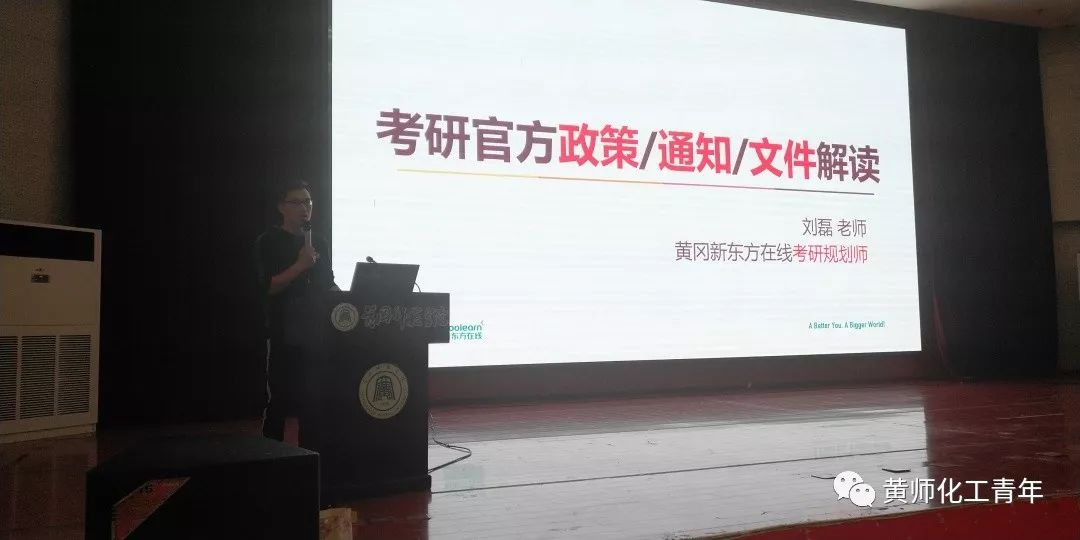 接着,五位学长学姐分别对自己的考研经历从不同角度进行了经验分享。总分高达384分的胡娜学姐分享了自己专业课是如何复习并取得高分的;跨专业考研并成功被西南政法大学录取的刘冬冬学长向大家分享了自己的军旅生活以及从部队退役后复学的心理状态,军旅生涯培养了他良好的政治素养和自控能力,从而使他在复学后能坚持自己的梦想,顺利的考上研究生。经历了三次调剂,辗转四地复试的梁子钦学姐从如何选择学校,如何有效调剂的角度分享了她的曲折求学之路。此次交流总结会我们还请来了14级学姐黄凡为大家讲述了自己的二战艰辛之路,虽然二战成绩非常理想,但这其中的种种压力和困难不是一般人可以承受。最后,“2018年度黄师魅力学子”、考取中科院的邹水香学姐用诙谐的语言为我们分析了考研路上如何应对压力,以及在平时如何积蓄能量。我们还有幸邀请了黄冈新东方在线考研规划师刘磊为我们解读了考研形式与政策。