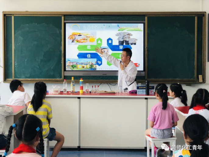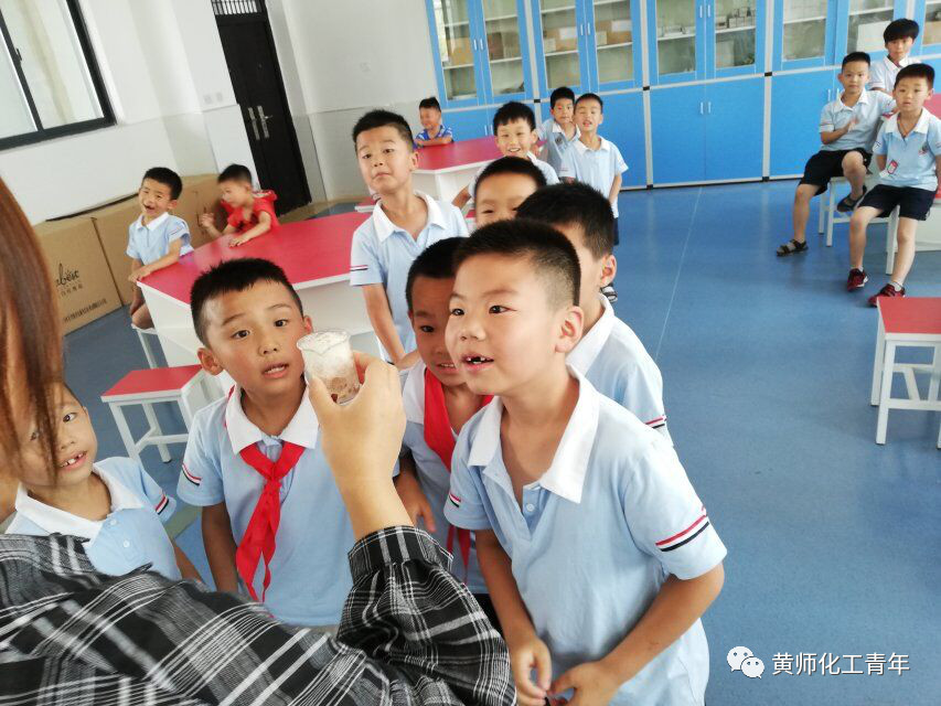 2019年6月24日上午,bv伟德国际1946“阳光化学公益团队”去到了黄冈市实验小学给一二年级的小孩子展示化学的魅力。