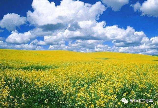 江岭大片的油菜花开放,春景如画。