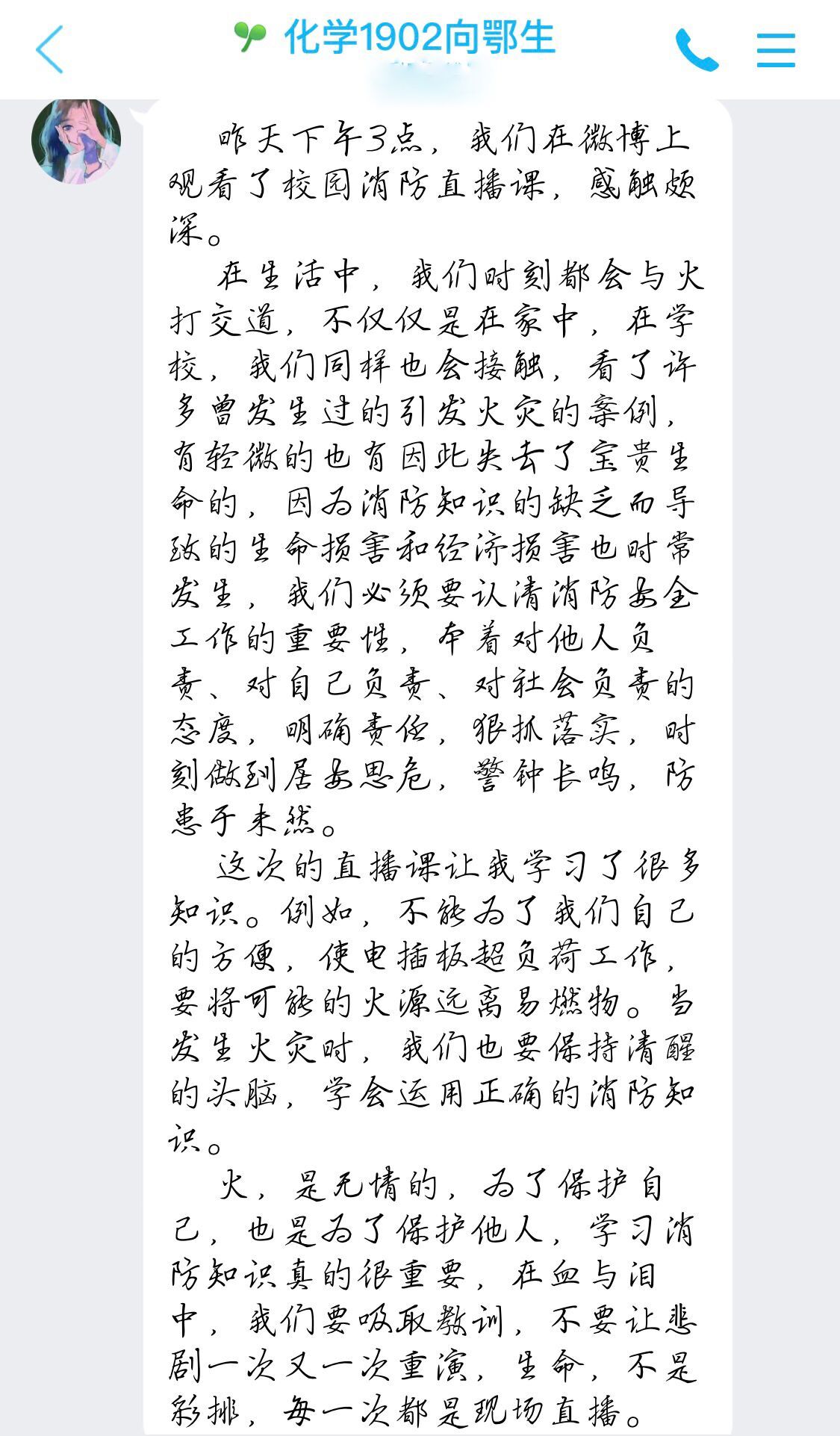 通过这次直播课,我们的安全消防意识得到了加强,同时也提高了对火灾等紧急突发灾害的自救逃生技能,在做实验时,更要注意遵守实验室安全规定,避免不必要的灾难发生。当火灾发生时,一定要冷静应对,科学自救和求助他人。我们也应该反思,不做违背自然的事情,应当尊重自然,顺应自然,保护自然。让我们共同努力,消除火灾隐患,让青春没有遗憾!