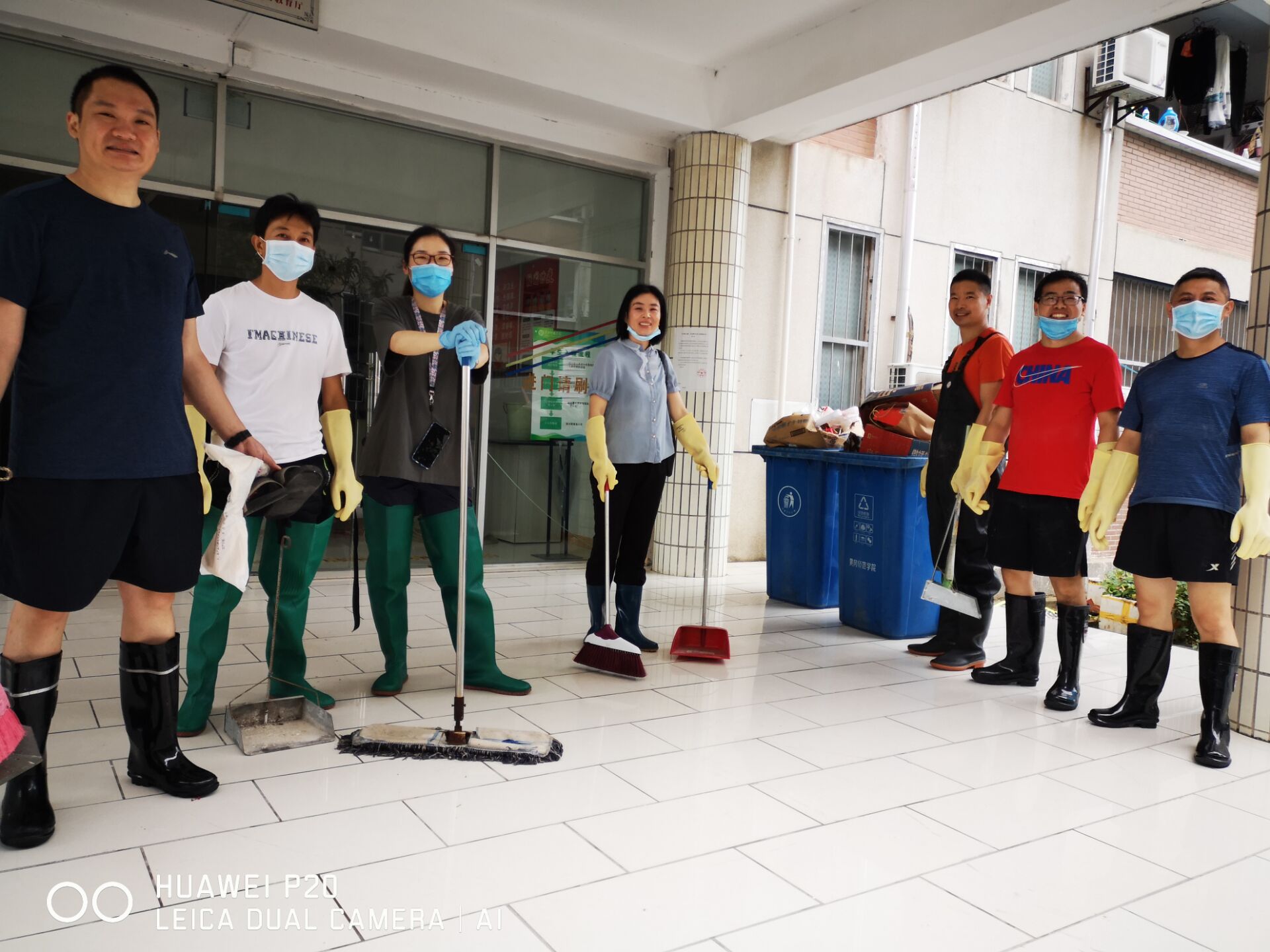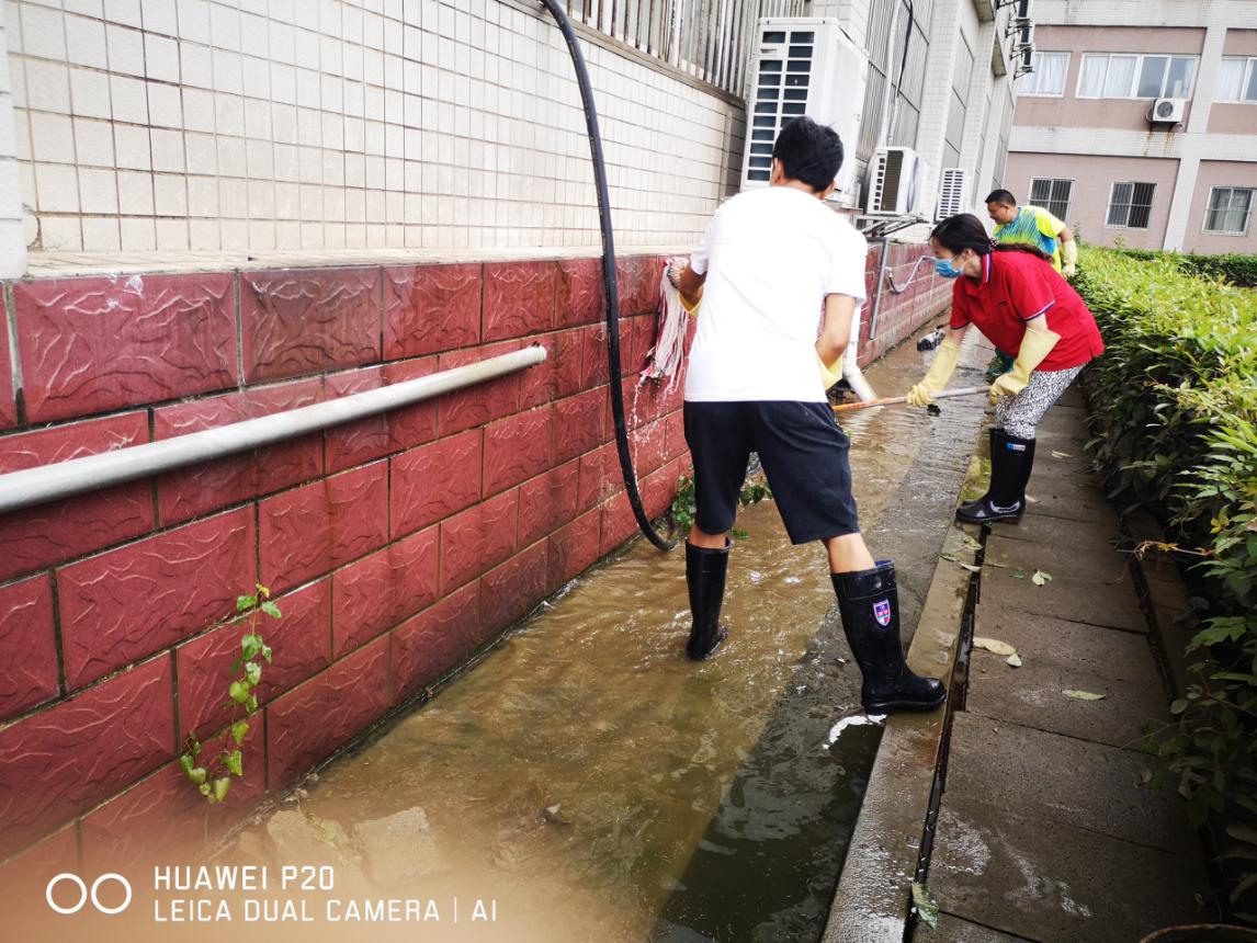 7月12日﹑13日,学校决策英明,部署有方,校园积水退去,学院接到通知立即对学院员工宿舍﹑化学楼内及周边区域环境卫生进行全面清扫和消毒。一场惊心动魄的抗洪战疫取得了伟大的胜利!