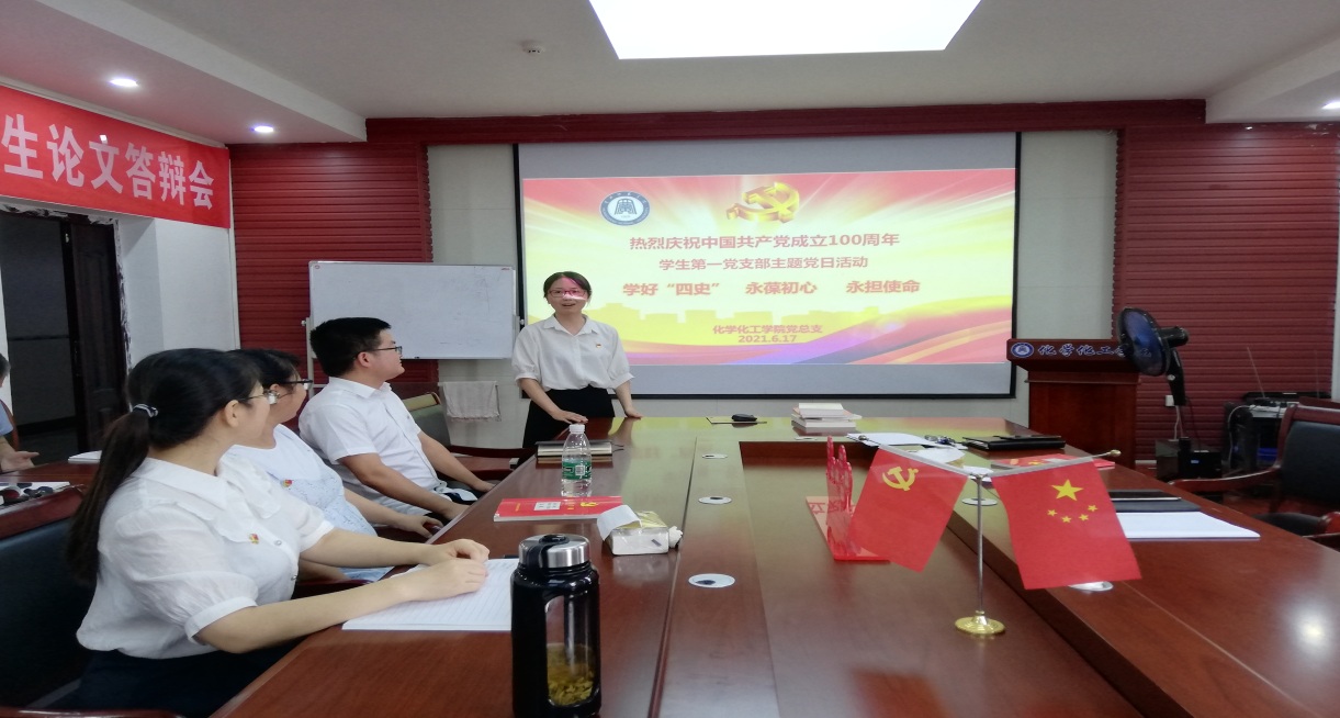 6月17日下午,bv伟德国际1946员工四个党支部分别在化学楼407会议室、连廊508党员活动室等地开展“学好“四史”,永葆初心、永担使命”支部主题党日活动,活动由党支部书记主持。