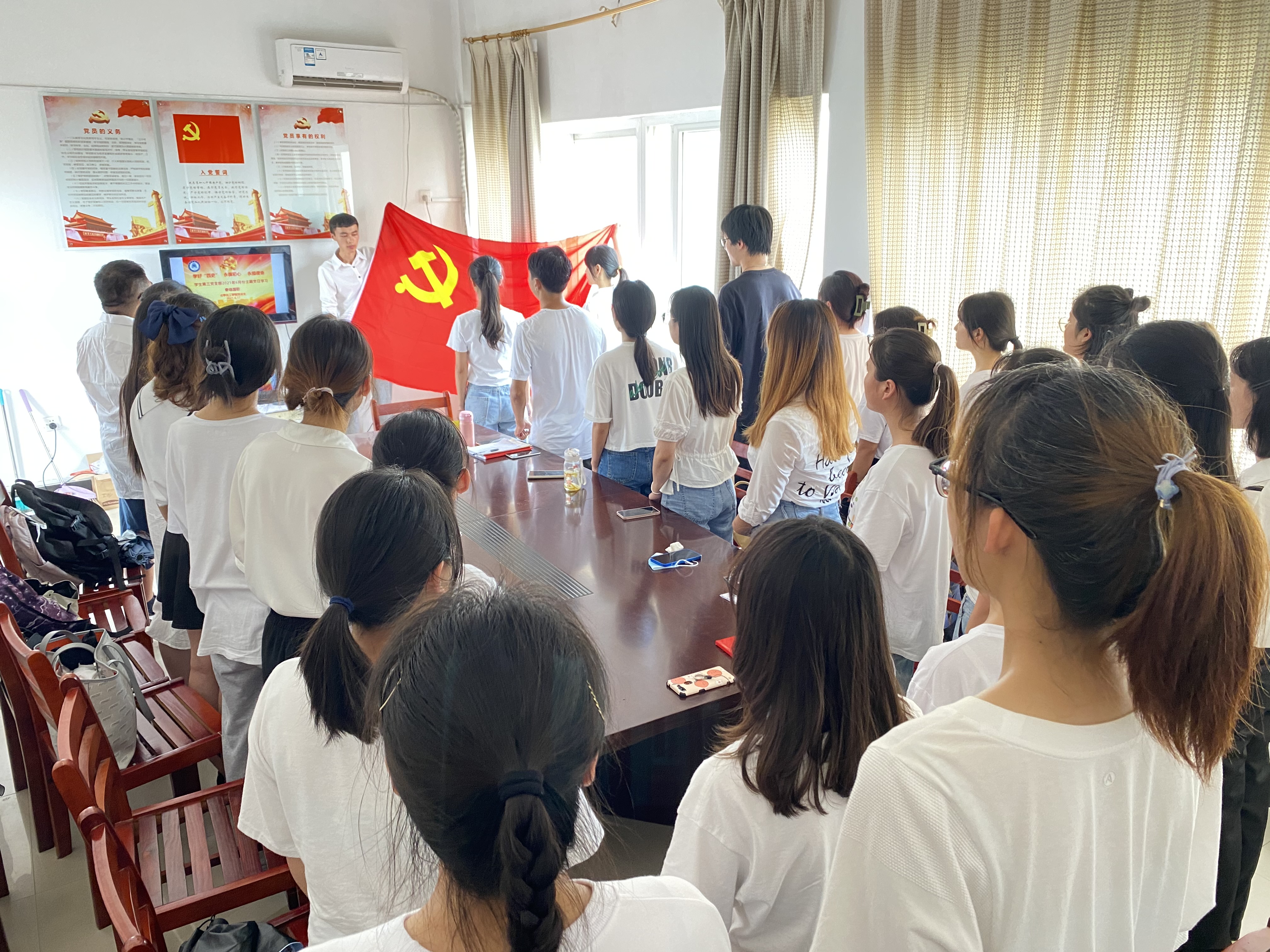 各支部严格按照“5+X”要求认真完成所有规定和自选动作,全体党员同志通过复兴壹号缴纳6月份党费,齐唱国歌,重温入党誓词,齐诵党章(总纲),齐学《中国共产党纪律处分条例》(总则第一章);认真学习《认真学习习近平总书记关于学好党史、新中国史、改革开放史、社会主义发展史重要讲话内容节录》、《认真学习习近平总书记关于选人用人及管理监督干部重要论述》、《认真学习换届纪律“十严禁”要求》、《红军长征和胜利会师》、《中国共产党组织工作条例》、《中国共产党统一战线工作条例》、权威解读:六问《中国共产党统一战线工作条例》等文件精神,各支部结合工作实际开展讨论,特别是当前的党史学习教育、毕业生系列工作、期末考试工作、实习工作、“七一”活动等。
