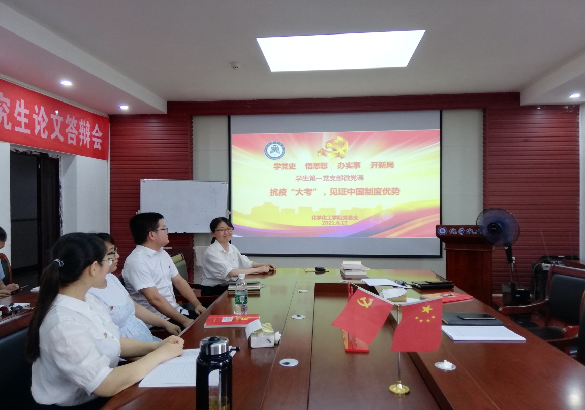 2021年6月17日下午,bv伟德国际1946四个员工党支部分别在化学楼407会议室、博学楼118室等地召开党员大会,四个党支部书记分别讲党史专题微党课。
