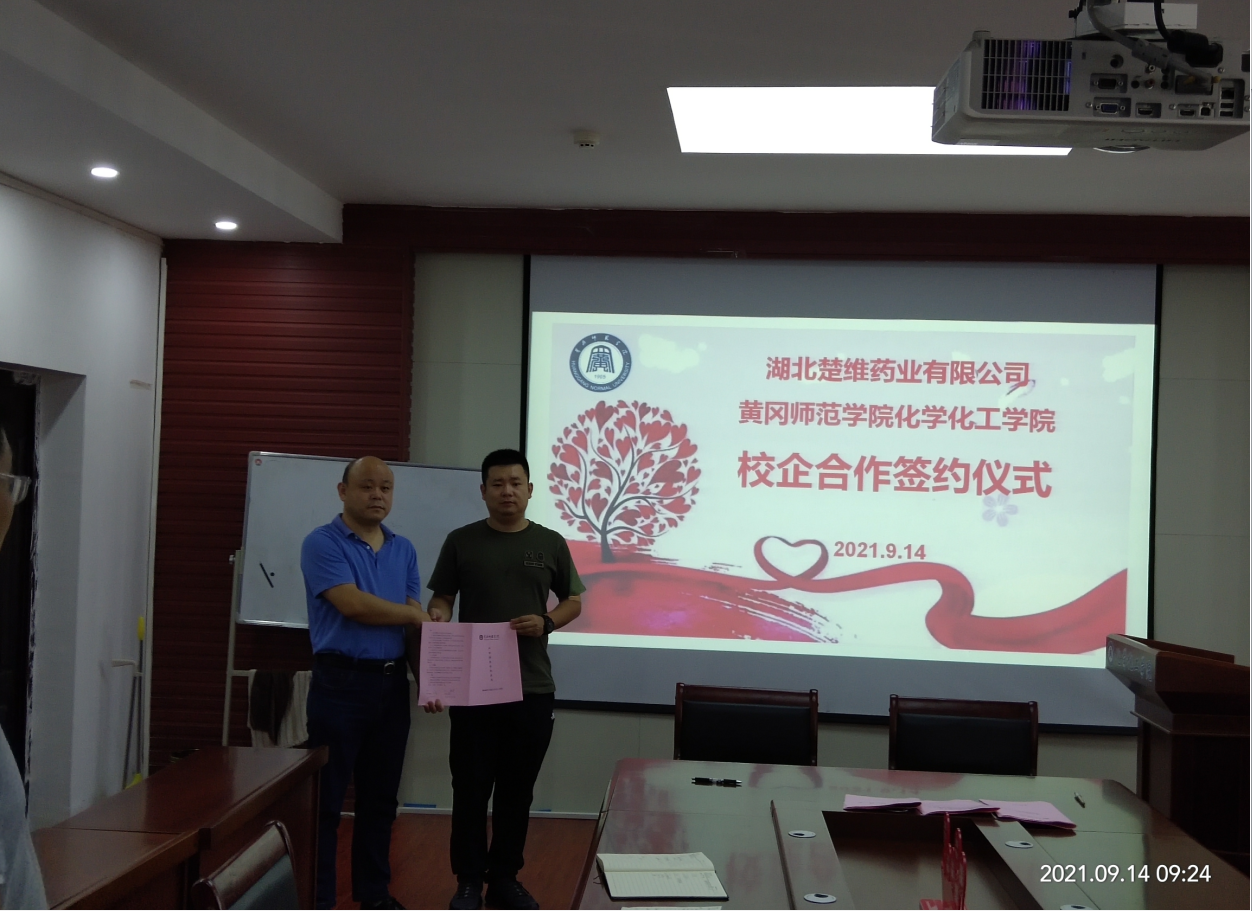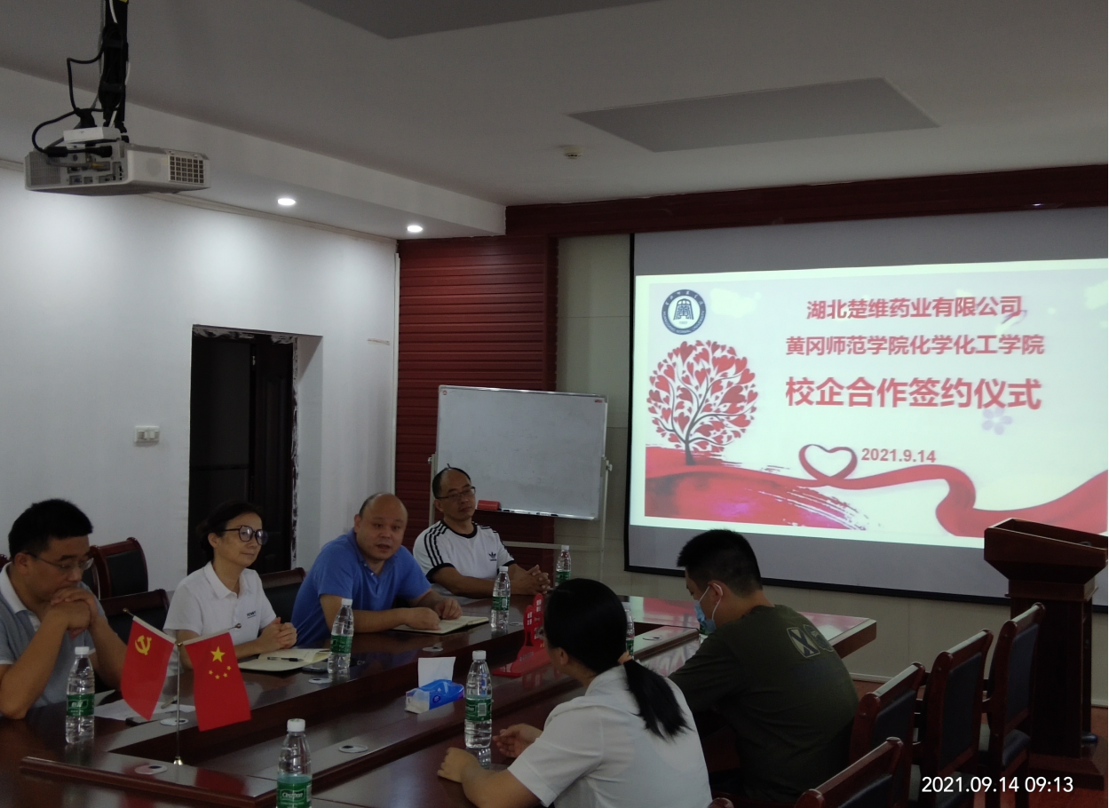 9月14日上午,湖北楚维药业有限公司总经理熊沣一行到bv伟德国际1946洽谈校企合作及共建博士工作站等事宜,并签订校企合作协议。