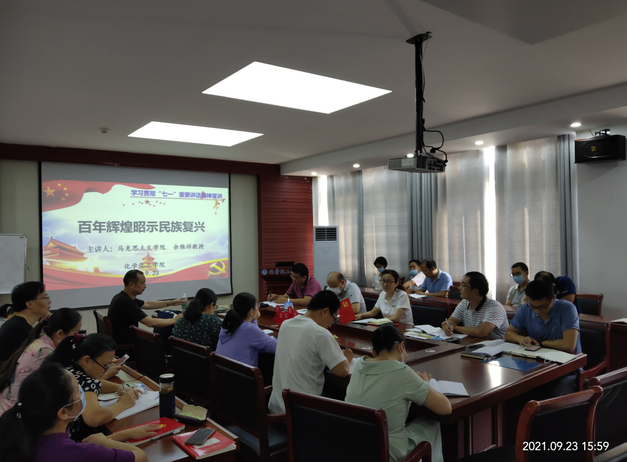 9月23日下午,bv伟德国际1946院在化学楼407举办学习贯彻“七一”重要讲话精神专题宣讲会。bv伟德国际1946全体教职工参加会议。