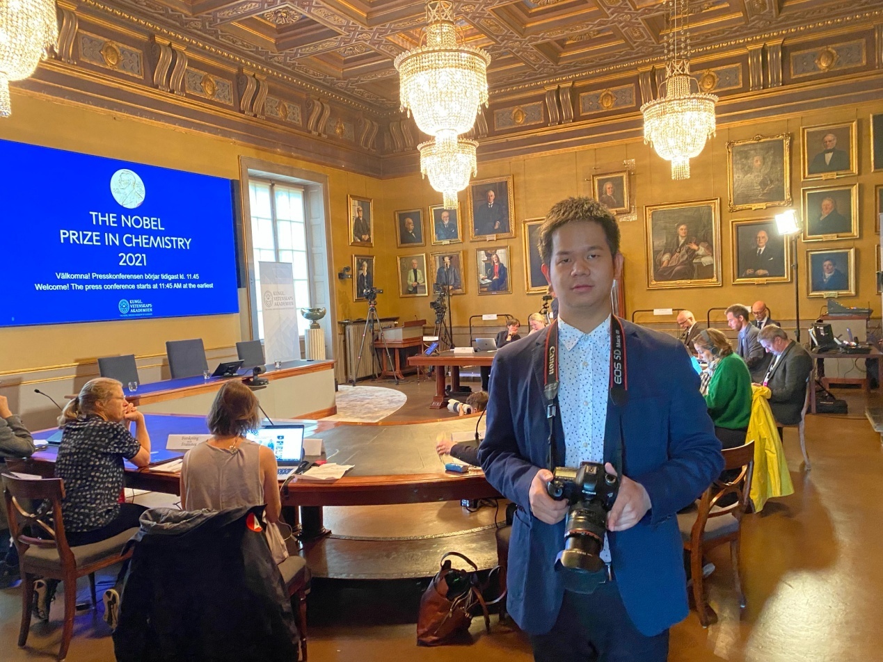 公司员工郭明(应用化学专业2008级),现芬兰华人科技协会会长,赫尔辛基大学博士研究生,在瑞典皇家科学院宣布现场见证这一过程。