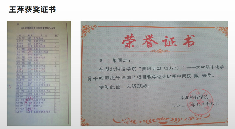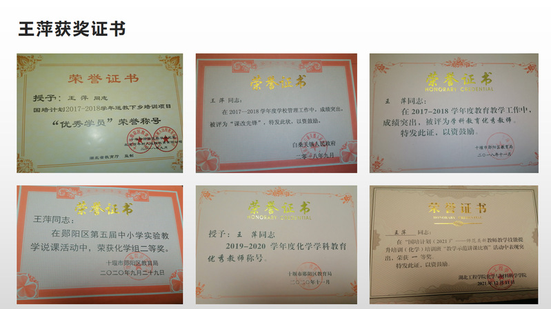 2020年11月被评为郧阳区化学学科教育优秀教师