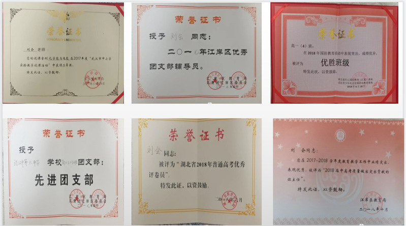 省级 | 2018年 | 湖北省普通高考优秀评卷员 |