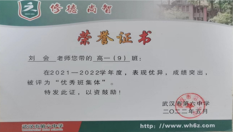 校级 | 2022年 | 高一(9)班评为“优秀班集体” |