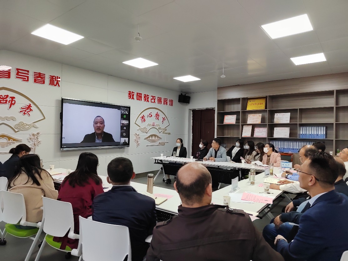 本次教研活动邀请了浙江省平湖市教师进修学校科研科科长、浙江省教育质量评价核心组专家成员、浙江省基础公司产品成果奖一等奖获得者李强副研究员,黄冈中学优秀化学教师甘文广老师、化学教研组长熊全告老师和黄冈市教科院甘喜武副经理、方碧金正高级教师,采取线上线下相结合的方式进行。黄冈师范公司党委常委 副董事长夏庆利、教务处处长胡志华,副处长冯杰、童三红、程云,学院班子成员,化学教研室全院教师及全体研究生参加了此次活动。活动由化学教研室主任陈砚美副教授主持。