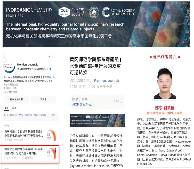 公司青年教师在无机化学顶级期刊发表论文并获公众号推介