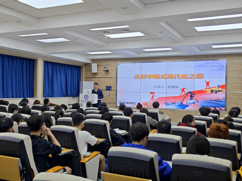 陈朝阳以“走好中国式现代化之路”为主题,从“接续奋斗,追求千年梦想”、“立足国情,开辟全新道路”、“凝心聚力,推进复兴伟业”三个维度,围绕中国式现代化的理论发展历程、科学内涵和实践路径等三个方面进行了深入浅出的讲解。他同全体员工一起回顾了中华民族千百年来对实现伟大复兴的追逐和梦想,深入剖析了中国式现代化与西方化的本质区别,共同分享了改革开放以来几代中央领导集体以及新时代以习近平同志为核心的党中央为实现中国式现代化这一伟大历史任务所作出的各种努力、发生的巨大变化和取得的伟大成就,鼓励同学们树牢信仰信念,立志民族复兴,练就过硬本领,让青春在新时代新征程的生动实践中焕发出更加绚丽的光彩。