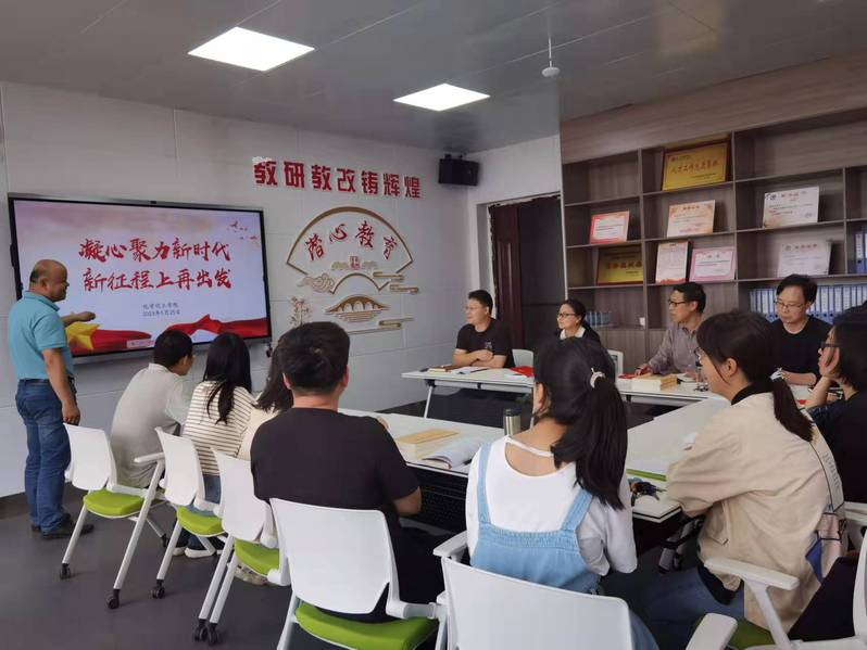 5月25日,经理田正芳在化工楼406室为教工第一党支部党员教师上了一堂题为《凝心聚力新时代 新征程上在出发》的党课。