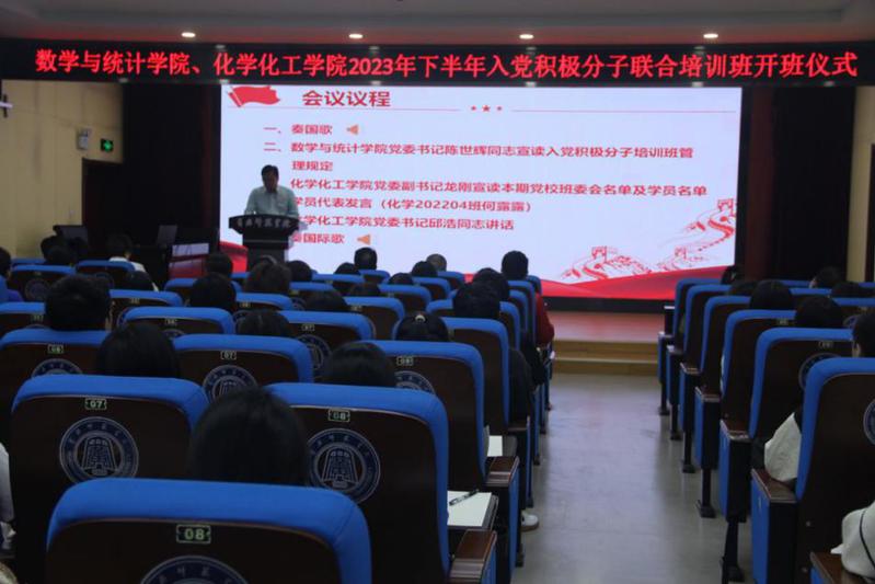 为深入贯彻落实新时代党的建设总要求,保证发展党员质量、提高党员队伍素质,不断提升入党积极分子的思想政治素质和理论水平。10月8日晚,bv伟德国际1946、数学与统计学院联合入党积极分子培训班开班仪式在北区致远楼三楼会议室举行。公司党委书记邱浩、数学与统计公司党委书记陈世辉,公司党委副书记龙刚出席开班式,开班式由龙刚主持。