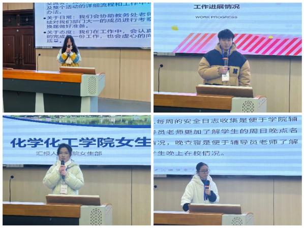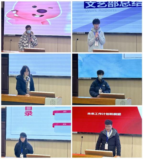 随后,员工会主席团代表和分团委代表就各部门工作情况作总结发言。“携手勇担新使命,引航奋进新征程”,员工会工作要深入贯彻落实党的二十大精神、团的十九大精神及学校第三次党代会精神。希望在新的一年,各部长干事能够汲取上一年工作的不足,凝聚各部门力量共同成长,团结合作,互帮互助,用笃行不怠的态度和不畏困难的精神,认真细致地完成每一项工作及接受新的挑战。