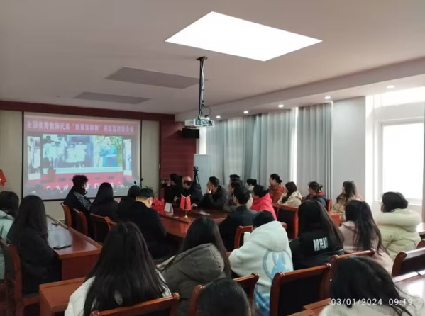 3月1日上午,bv伟德国际1946组织全体教职工和师范生集中观看了教育部教师工作司联合中国教育电视台主办,湖北省教育厅、湖北经济学院承办的“2024年全国优秀教师代表‘教育家精神’荆楚宣讲报告会”。教职工在化学楼407会议室集中观看,师范生在博学楼集中观看。