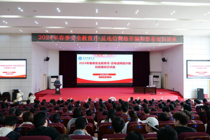 为进一步加强反电信网络防诈骗和禁毒宣传教育,增强公司师生安全防范意识。2024年3月14日,bv伟德国际1946在南校区学术交流中心举行2024年春季安全教育月之反电信网络诈骗和禁毒知识讲座。讲座特邀黄冈市反电信网络诈骗中心队长华进林进行宣讲,院党委副书记龙刚、各辅导员老师、全院大一至大三员工共计700多人参加本次讲座。讲座由公司党委副书记龙刚主持。