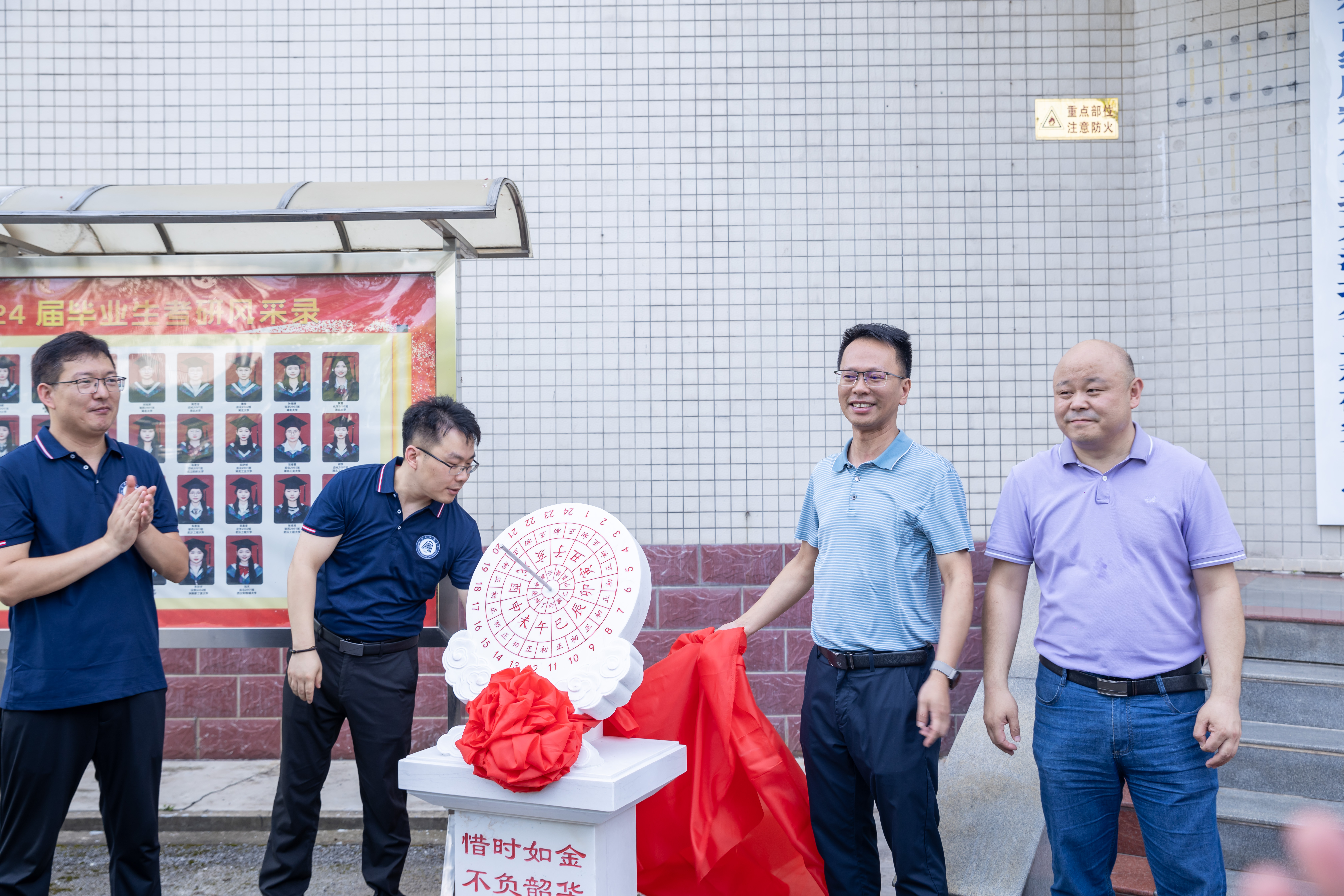 随后,员工一行代表与学院领导在化学楼门口,举行了捐赠仪式。公司党委书记邱浩、经理田正芳代表学院接受化学200402班员工给学院捐赠的日晷雕像并合影留念。