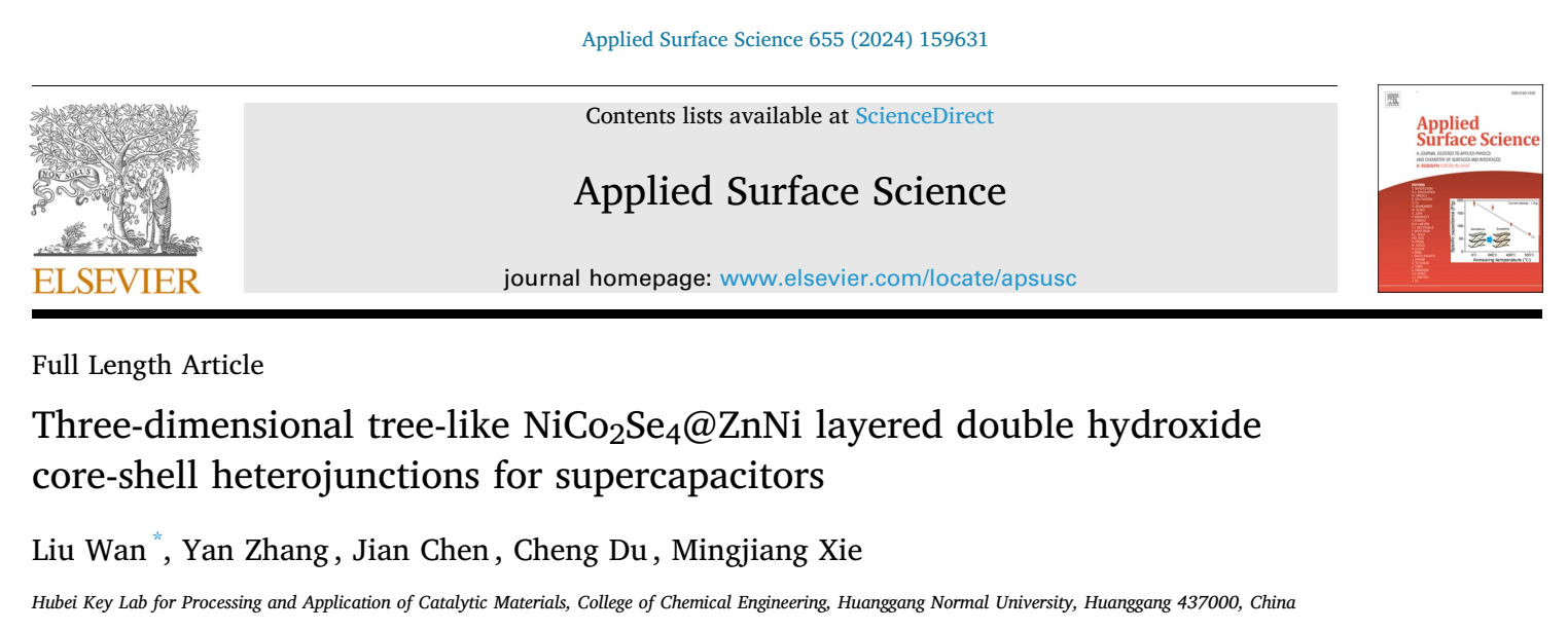 公司校级科研团队炭基能源材料团队,在期刊《Applied Surface Science》连续发表两篇最新研究成果“Synthesis of nickel selenide manganese selenide@cobalt sulfide heterostructure with superior stability for supercapacitors”和“Three-dimensional tree-like NiCo2Se4@ZnNi layered double hydroxide core-shell heterojunctions for supercapacitors”。bv伟德国际1946为论文唯一通讯单位,公司本科生叶格(化工2020级)、张燕博士、陈建博士、杜成博士和解明江教授参与了研究工作,万柳博士为论文第一作者。《Applied Surface Science》是由Elsevier集团出版的材料界面领域的国际重要学术刊物,位列中国科协高质量科技期刊分级目录中材料表面与界面领域的T1级,同时为SCI中科院分区TOP期刊。