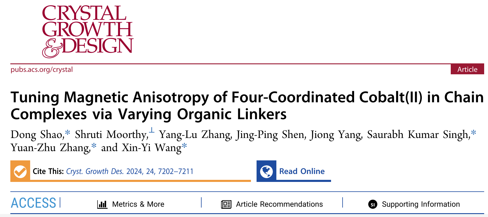 单分子磁体是无机化学研究前沿,单分子磁体因在量子计算和量子存储方面具有潜在的应用而受到广泛关注。近期,公司邵东副教授课题组连续在Crystal Growth Design(《晶体生长与设计》)上发表单分子磁体最新研究成果。Crystal Growth & Design是American Chemical Society(美国化学会)出版社旗下晶体学领域权威期刊,中科院SCI小类一区期刊,中国科协高质量科技期刊分级人工晶体学T1期刊。