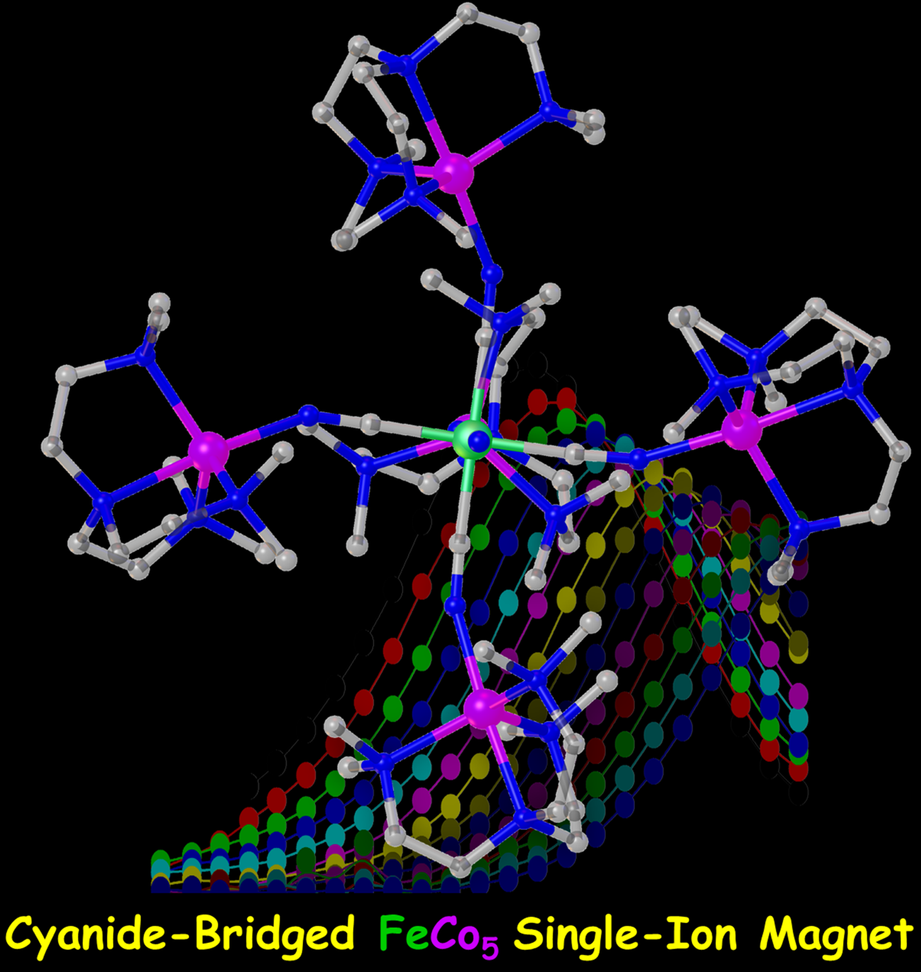 对于单分子磁体而言,多核过渡金属团簇化合物仍然是迄今为止报道的最大的单分子磁体类别。单金属中心的单离子磁体报道已经很多,但基于具有新颖结构的各向异性过渡金属离子的团簇分子体系仍然引起了极大的兴趣。然而,设计和构建这样的多核单离子磁体配合物非常困难。基于此,团队通过利用抗磁的二价铁氰根构筑单元与单核钴配合物前驱体反应,合成了一例具有四方锥结构的FeCo5六核团簇,单晶衍射分析和磁性测量表明该化合物为第一例六核的单离子磁体。该工作以 “A Cyanide-Bridged FeCo5 Square-Pyramidal Single-Ion Magnet”为题,发表在Crystal Growth Design。邵东副教授为论文第一作者,bv伟德国际1946为论文第一通讯单位。南京大学王新益教授和印度理工学院Singh教授参与了本工作的研究。
