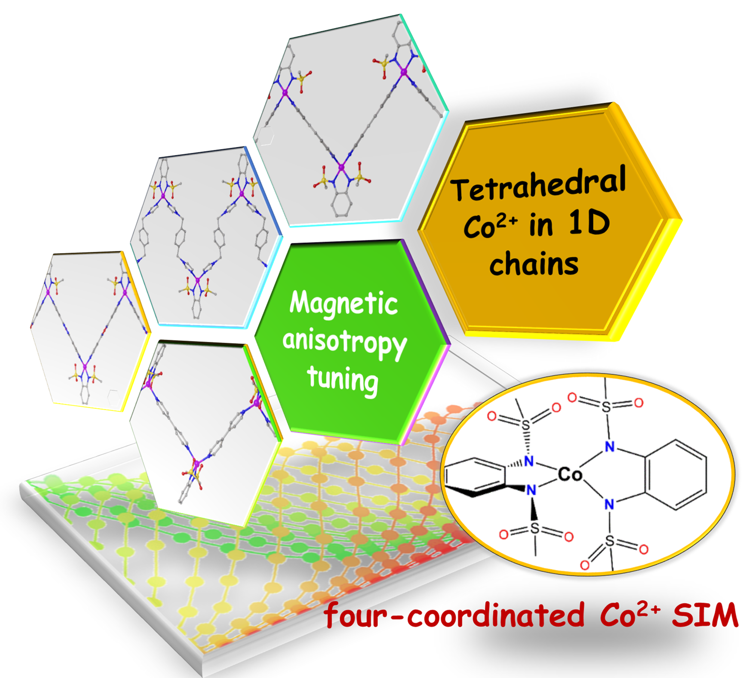 通过改变金属离子的配位环境来调节磁各向异性对于开发高性能单离子磁体具有重要意义。研究团队以不同长度的有机配体作为调控手段,构筑了四种结构不同的一维四配位钴链配位聚合物,研究结果表明钴离子的磁各向异性得到了有效调控。上述结果不仅丰富了低配位金属中心单离子磁体家族,而且为调节一维链中四配位钴离子的磁性各向异性提供了一种配位链平台。该工作以 “Tuning Magnetic Anisotropy of Four-Coordinated Cobalt(II) in Chain Complexes via Varying Organic Linkers”为题,发表在Crystal Growth Design。邵东副教授为论文第一作者和通讯作者,bv伟德国际1946为论文第一通讯单位。南京大学王新益教授、南方科技大学张元竹教授、印度理工学院Singh教授参与了本工作的研究。