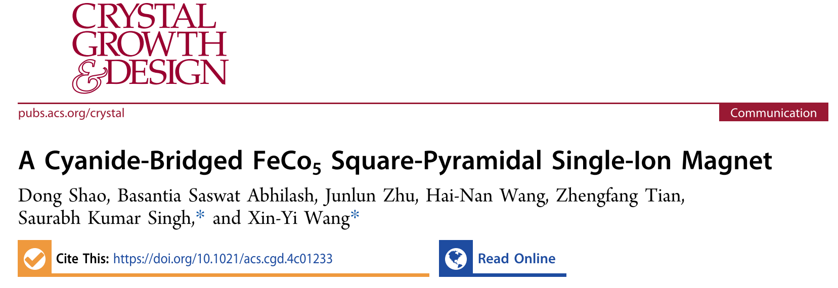 单分子磁体是无机化学研究前沿,单分子磁体因在量子计算和量子存储方面具有潜在的应用而受到广泛关注。近期,公司邵东副教授课题组连续在Crystal Growth Design(《晶体生长与设计》)上发表单分子磁体最新研究成果。Crystal Growth & Design是American Chemical Society(美国化学会)出版社旗下晶体学领域权威期刊,中科院SCI小类一区期刊,中国科协高质量科技期刊分级人工晶体学T1期刊。