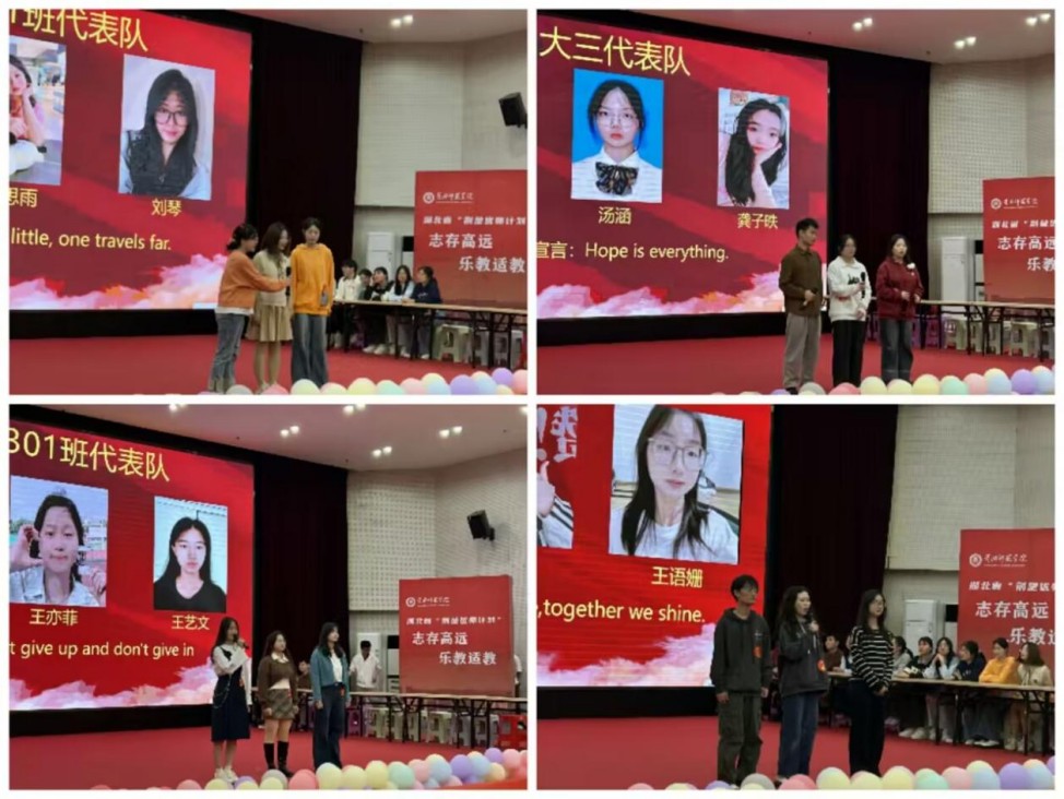 第二个环节为“词汇王”争霸赛。参赛队伍以班级为顺序,随机抽取题库现场答题,他们带着满满的自信与期待,思维敏捷,快速理解题目并组织答案。师生们被参赛者们的精彩表现所吸引,不时爆发出阵阵喝彩声,整个现场气氛热烈,热火朝天。