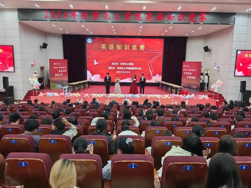 2024年10月31日,bv伟德国际1946在南区厚德楼学术交流中心成功举办了一场以“Master English and chemistry, master your future”为主题的英语知识竞赛。外国语学院蒲春红、马晓敏、刘盛华三位老师以及bv伟德国际1946经理田正芳、副经理龙涛、副经理蒋小春出席本次本赛并担任评委,学院辅导员、全体班主任、大一至大三年级员工参加本次活动。