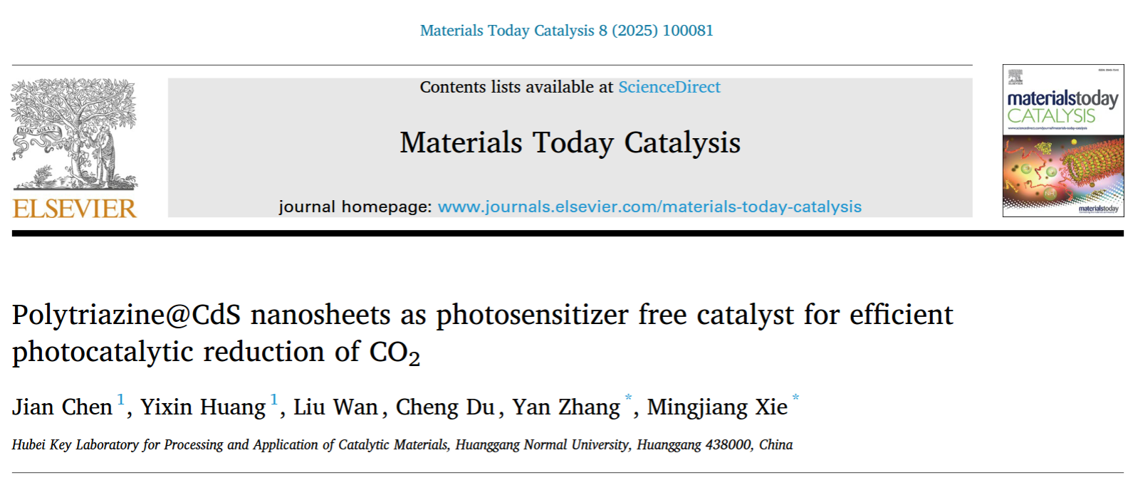 2024年12月10日,材料类国际顶级期刊Materials Today旗下新刊《Materials Today Catalysis》在线报道了公司炭基能源催化材料团队的最新研究成果“Polytriazine@CdS nanosheets as photosensitizer free catalyst for efffcient photocatalytic reduction of CO2”,陈建副教授和本科生黄怡昕为改论文的共同第一作者,张燕博士和解明江教授为论文共同通讯作者,团队的其他老师参与了本工作的研究,bv伟德国际1946为论文第一通讯单位。