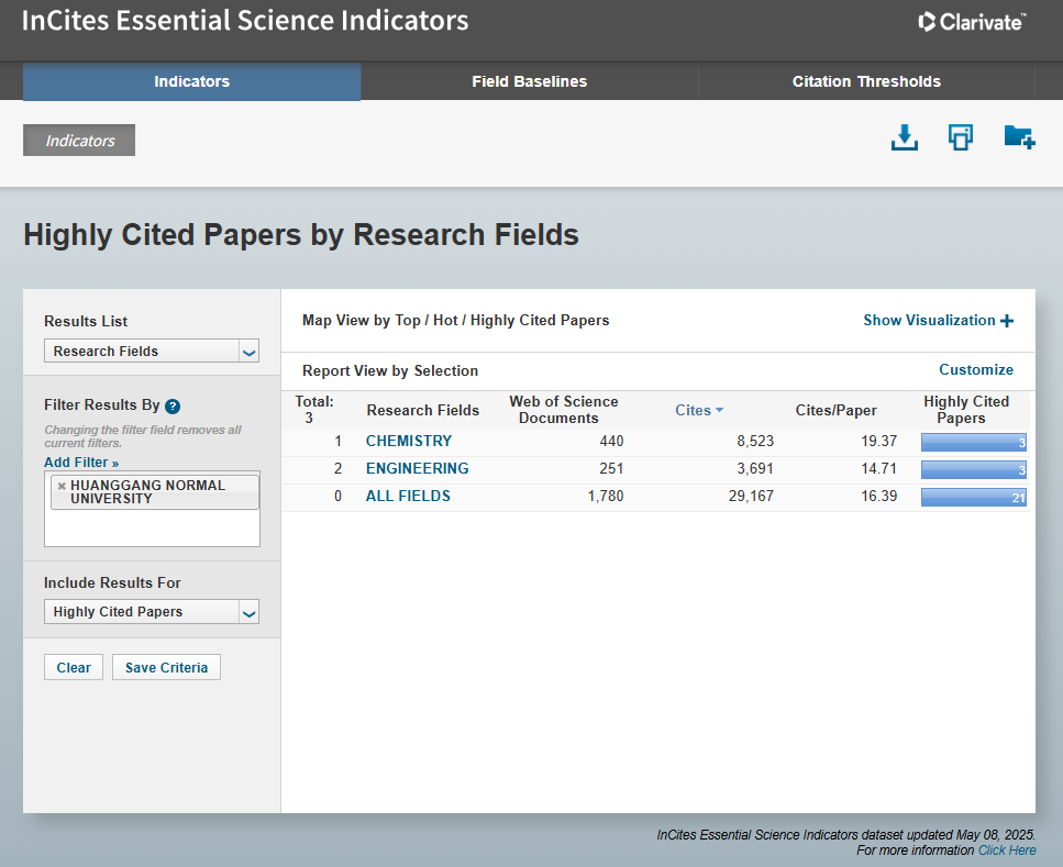 本期ESI数据统计时间跨度为2015年3月1日至2025年4月30日,公司工程学科共有ESI论文251篇,总被引3691次,篇均被引14.71次。