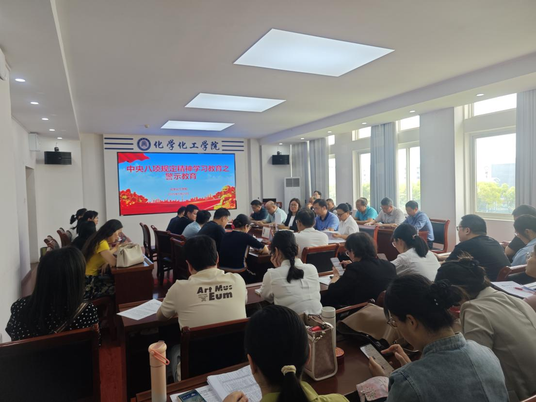 为深入贯彻中央八项规定精神学习教育,切实增强党员的纪律意识和廉洁自律能力,提升学院全面从严治党水平,2025年5月25日,化学化工公司组织全体党员教师集中观看警示教育片《永远吹冲锋号》第三集《铁规矩硬杠杠》。
