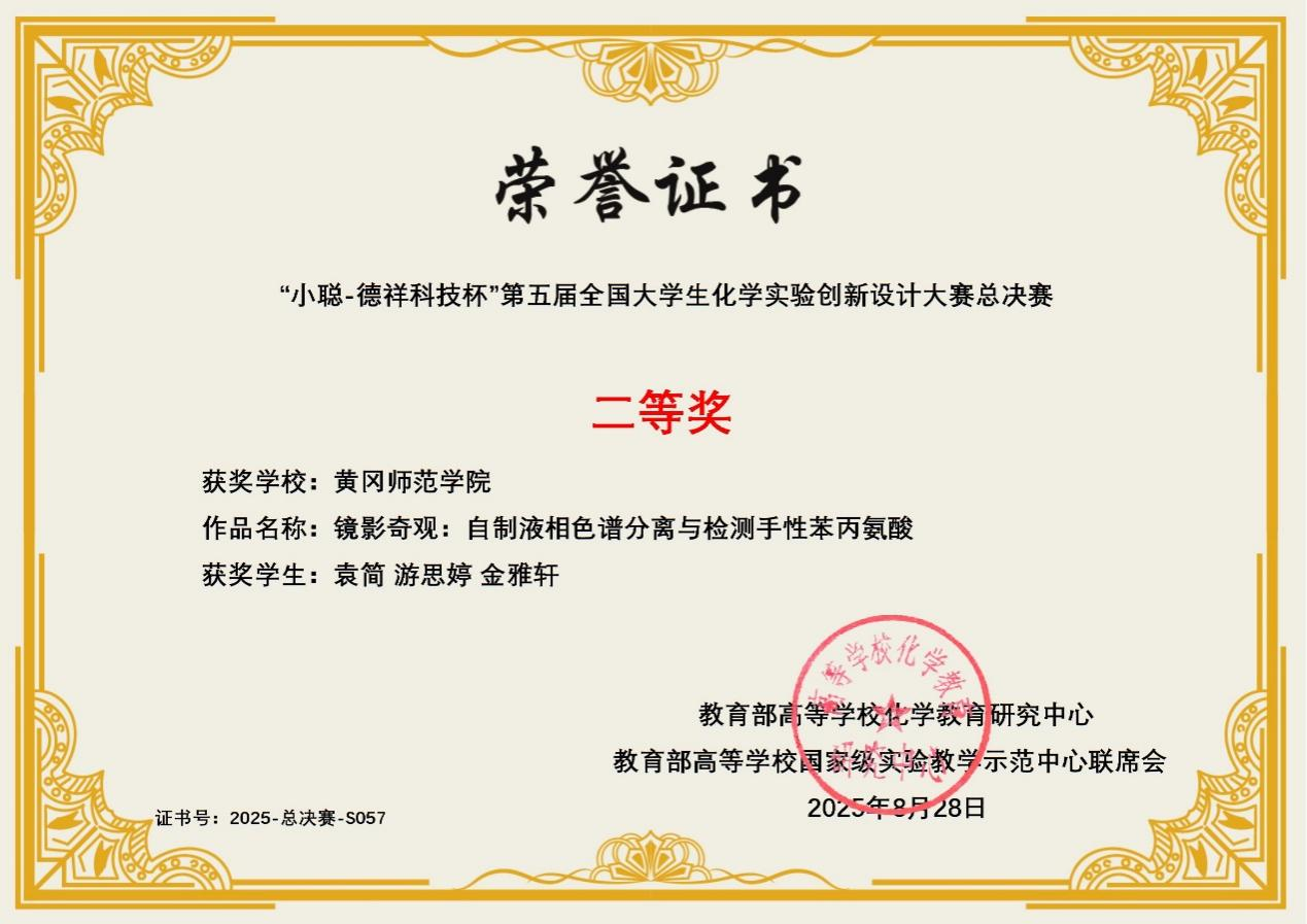 2025年8月21-24日,第五届全国老员工化学实验创新设计大赛总决赛在兰州大学落下帷幕。bv伟德国际1946制药工程专业2023级本科生袁简、游思婷、金雅轩组成团队,在张龑、杨一思老师指导下,凭借扎实的专业功底与创新实践能力,一路披荆斩棘,以华中赛区一等奖的身份获得参加全国总决赛的资格,并在全国总决赛中荣获二等奖。