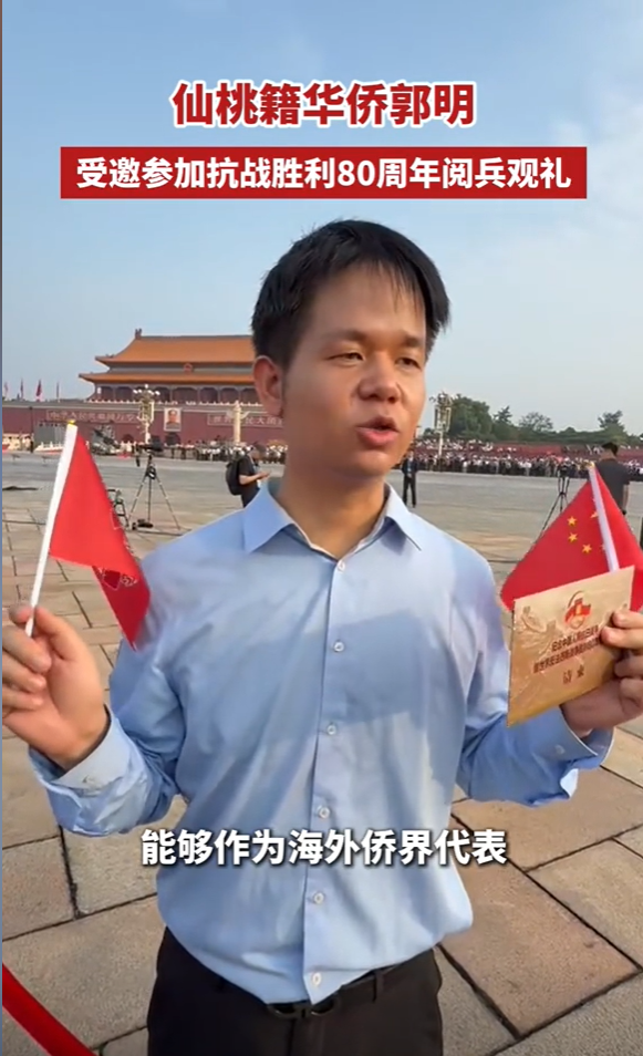 郭明现场见证了这一历史性时刻,看到各类新型武器轮番亮相,郭明感到无比自豪。现场聆听了习近平总书记的重要讲话,郭明表示,抗战需要团结,和平发展更需要民族之间相互理解,回去后他将向芬兰以及欧洲相关国家人民宣传中国人民对世界反法西斯斗争所作的重大贡献,传递中国的和平理念。