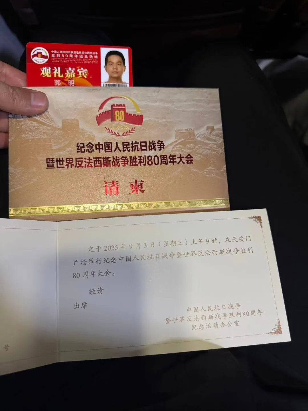 9月3日上午,纪念中国人民抗日战争暨世界反法西斯战争胜利80周年大会在北京天安门广场隆重举行。公司优秀员工郭明受邀现场观礼。