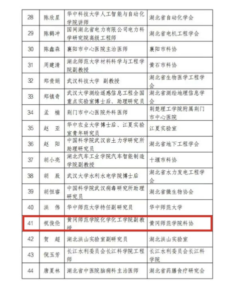 近日,省科协公布2025年湖北省青年科技人才晨光托举工程入选者名单,公司教师祝俊伦副教授成功入选。