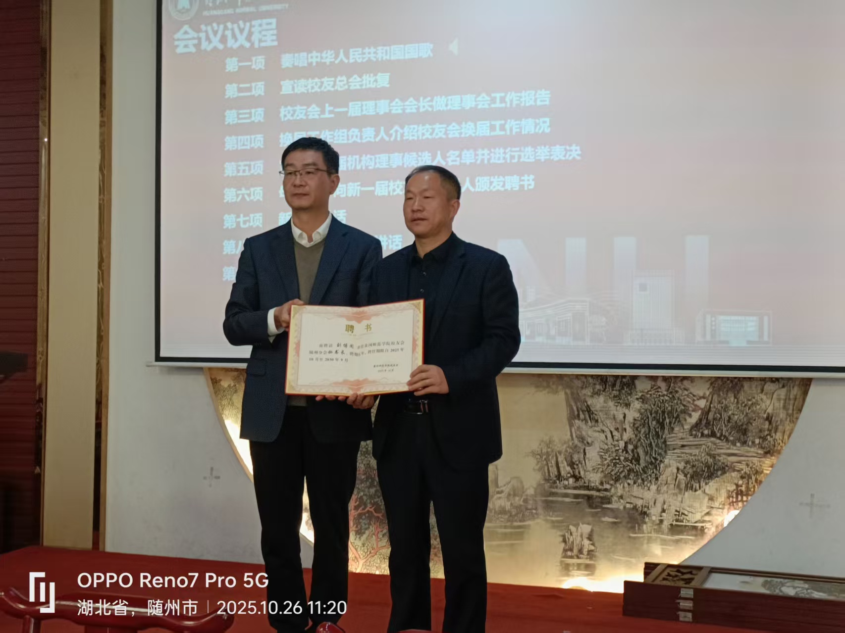新任会长徐伟讲话表示,加强责任担当,认真履职,带领随州员工会以“服务员工、反哺母校、助力随州”为核心目标,一方面加强员工间的常态化联络,打造温暖的“员工之家”;另一方面积极推动员工资源与母校发展、随州地方建设深度融合,为各方发展贡献员工力量。