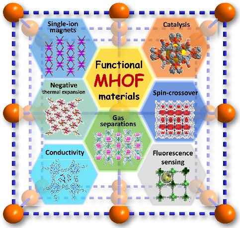 该综述系统总结了金属-氢键有机框架(MHOFs)的研究进展,MHOFs是一类新兴的晶态多孔材料,通过金属-有机单元的氢键导向自组装构建而成。文章全面总结了MHOFs研究的基本原理和最新进展,涵盖构筑策略、关键特性,以及在气体分离、质子传导、催化、传感、自旋交叉、单离子磁体和负热膨胀等领域的应用。同时,本文还批判性地探讨了该领域当前面临的挑战与未来发展方向。该综述能够促进研究人员对MHOFs的深入理解,并为具有定制化结构和功能特性的MHOFs材料的系统开发提供有价值的指导。